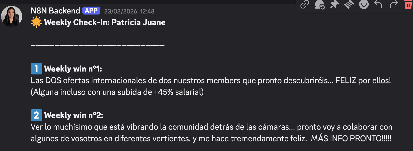 (No continúo compartiendo más para no hacer este email demasiado largo...) Sigamos con los updates... 3️⃣ Nuevo Colaborador en nuestro Equipo Formativo 👉 A.I. + SYSTEMS SESSIONS ⚒️Lo único que puedo decir es... Que dicha persona es un Full Stack Senior Engineer & Software Architect con muchísima experiencia trabajando para una compañía con base en San Francisco, USA... Y que trae MUCHÍSIMA motivación para ayudarme a hacer crecer esta pata de la formación 🚀 El Domingo sabrás más info al respecto...Presta atención a mi canal 😉 4️⃣ Alumnos recibiendo Ofertas Internacionales, tales como...
